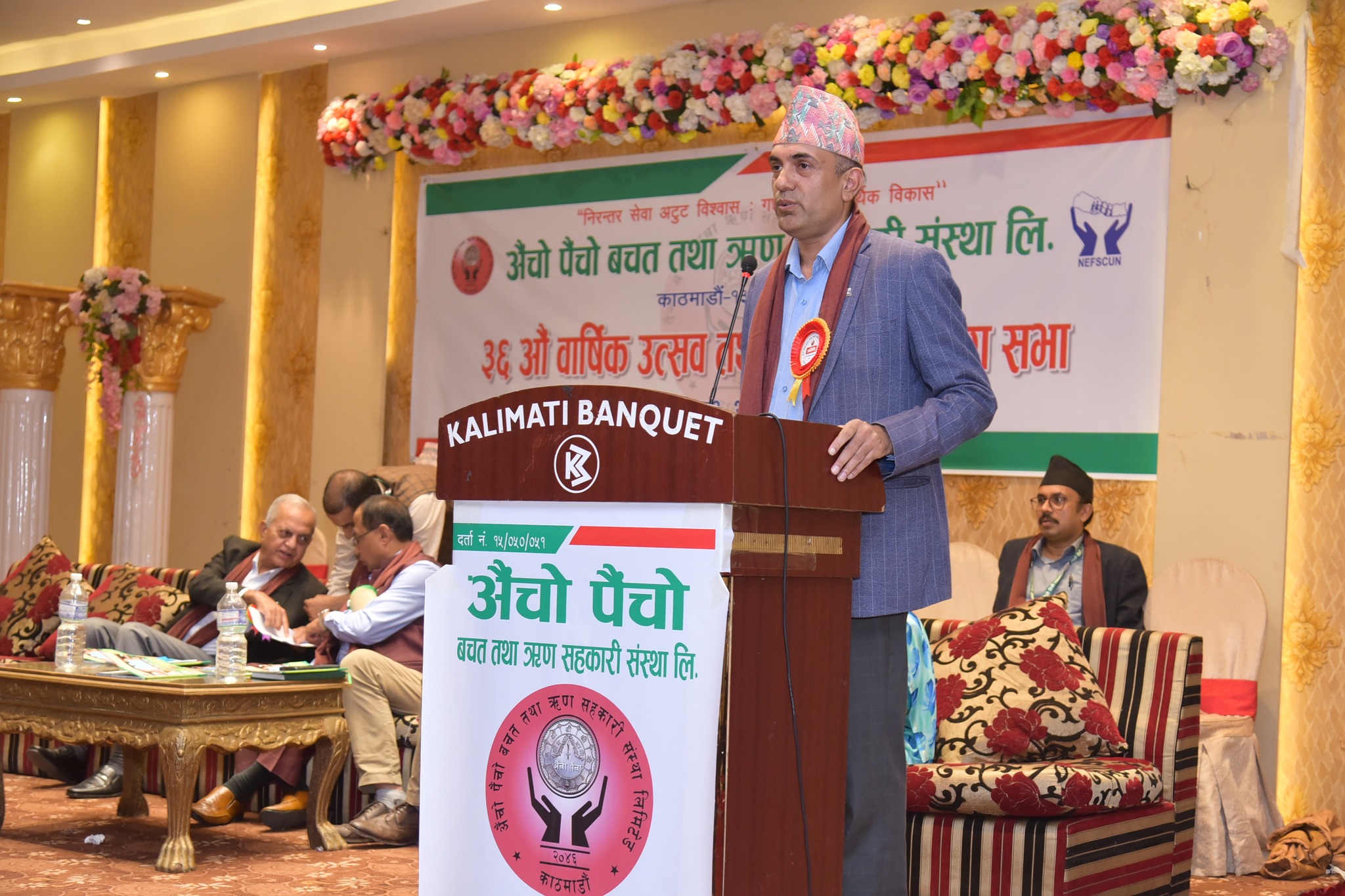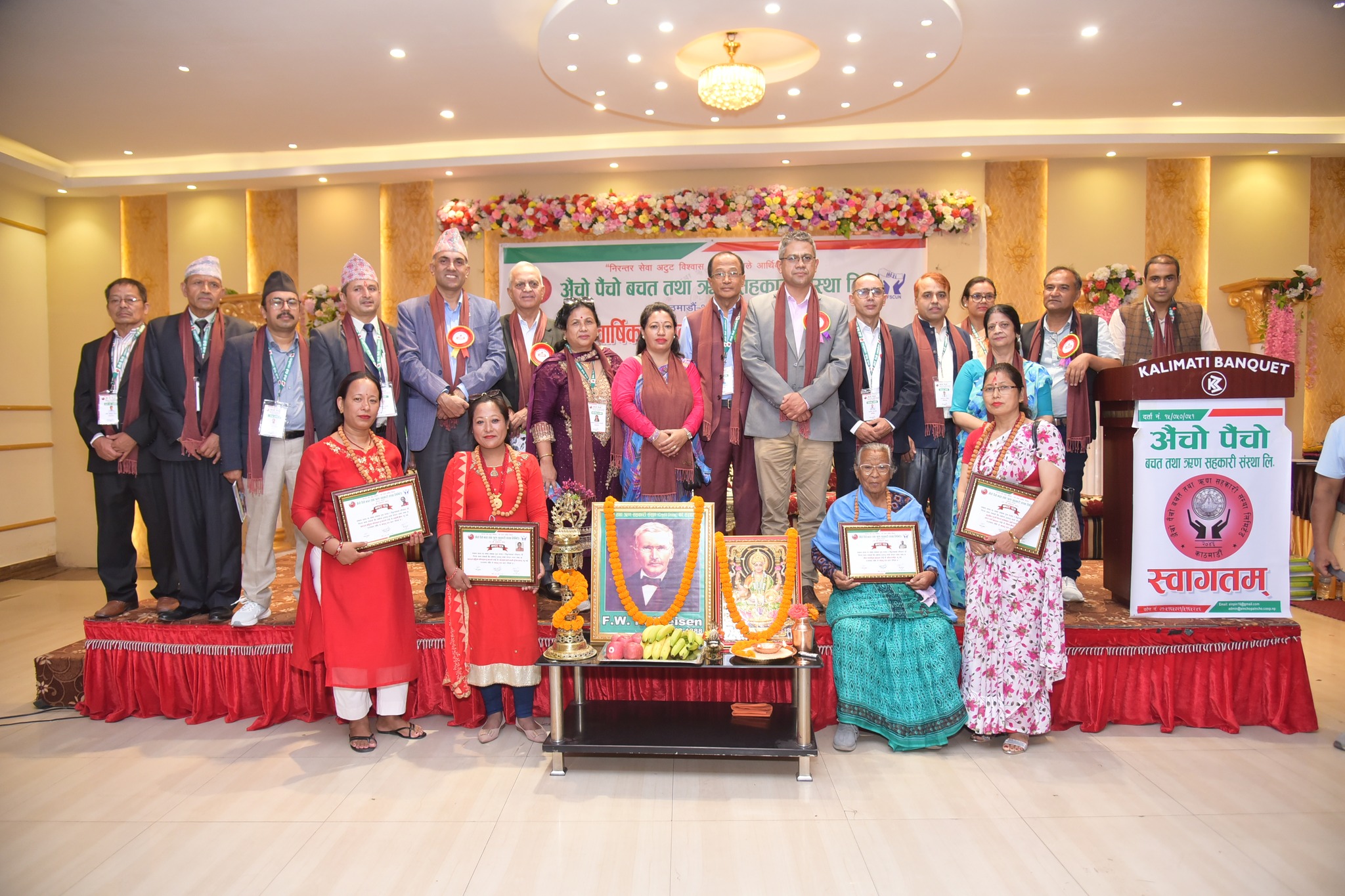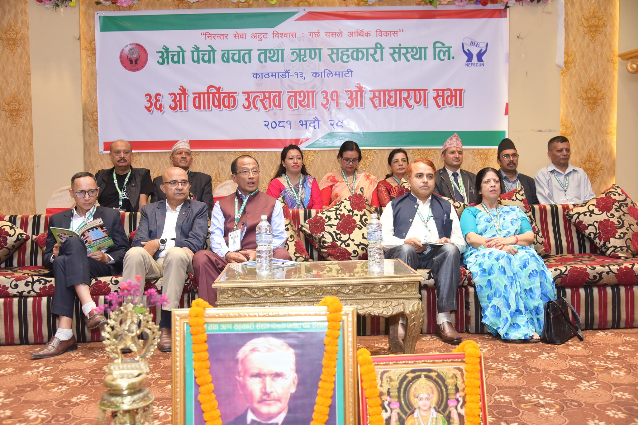 36th annual celebration of this organization and 31st annual general meeting program concluded at Kalimati Banket Kalimati under the chairman of the organization Shri Dayaram Prajapati and President of National Cooperative Federation, Mr. Omdevi Mallajiu. Senior citizen member, best savior member, best debt member, member receiving most amount from protected capital return fund and S. E. The children who passed E were honored. NEFSCUN president Chandra Prasad Dhakal, former president of NEFSCUN Rishiraj Ghimire, Suman K, president of district vegetarian association. C. Nepmaskun director Khemraj Subedi and Laxmi Prasad Shrestha, president of Sakwa College, expressed his good wishes.